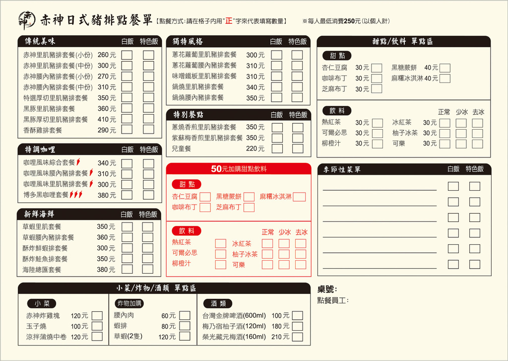 ※備註:酌收10%服務費 / 低消每人$250