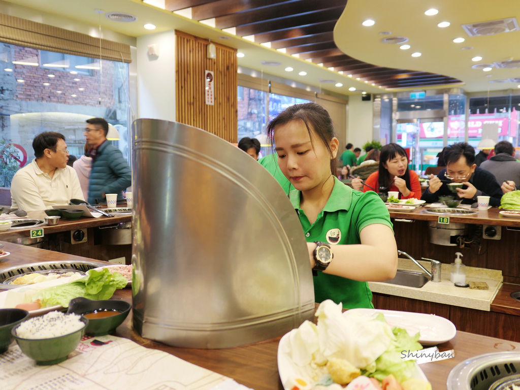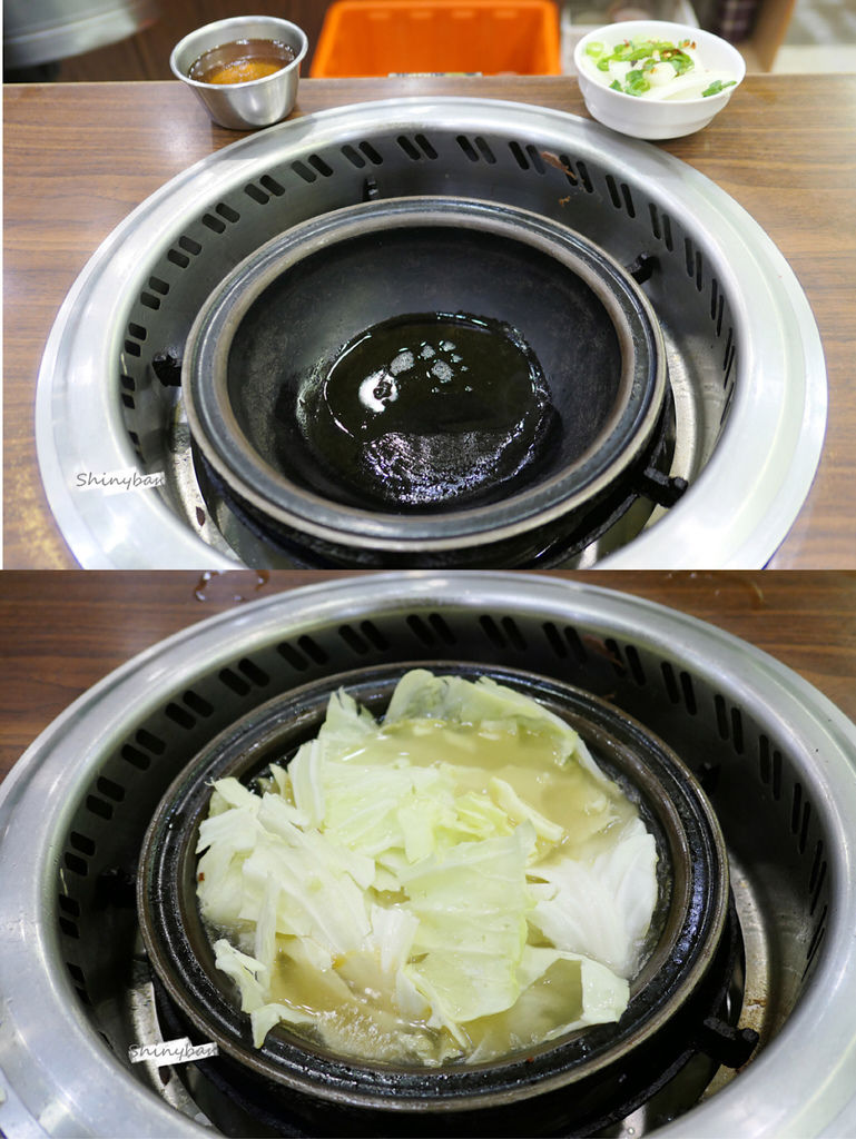 點餐不久後,店員就會直接將肉品加上洋蔥、辣椒、蔥花在石頭鍋內拌炒,為了防止客人被油花濺到,還很貼心的準備了隔板,這時陣陣傳出的香味已經讓我口水不停分泌了!