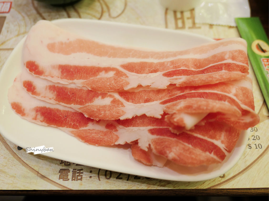 豬五花一份約六片,每片都是薄薄的,雖然稍微燙過後,肉質依舊吃得出來滿Q彈,但稍嫌份量不足,爽度不夠。