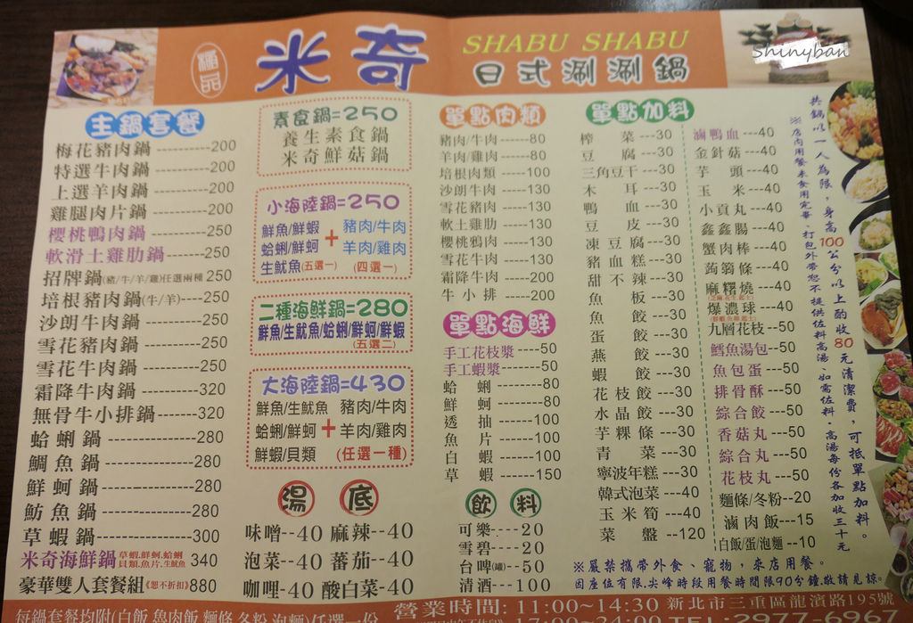 「米奇的鍋」是PTT版友非常推薦的日式涮涮鍋店,聽說用餐時間人滿為患,所以趁了個假日午後來一飽口福,店面位置位於捷運三重國小站後方的巷子內。