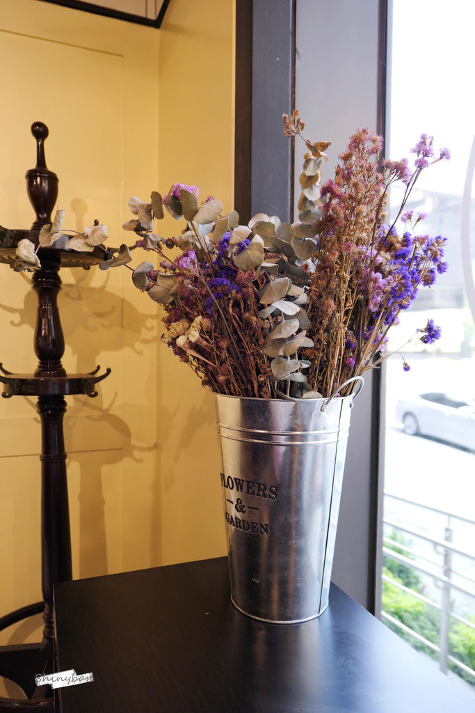 店內沒有過度裝飾,是以一些乾燥花及牆面廣告做佈置。