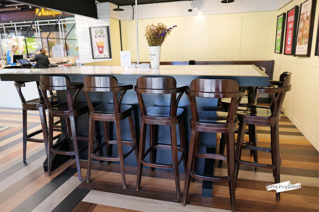 除了櫃台之外,室內也有大片的落地窗,使得座位區有陽光灑落,十分溫暖舒服,座位區中間是吧檯個人座,高腳椅坐起來不是太舒服。