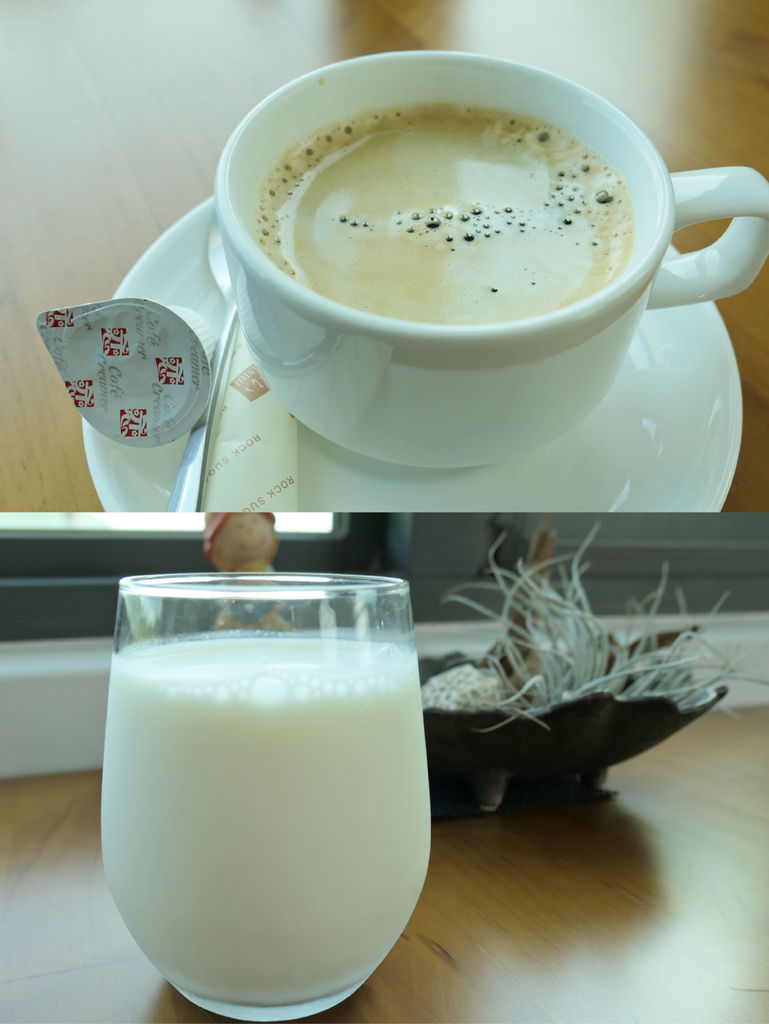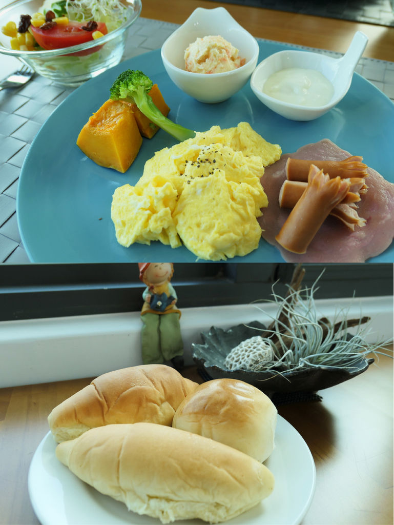 不僅有麵包吃到飽,還有沙拉、馬鈴薯泥、火腿等配菜,飲料也有牛奶跟咖啡可以做選擇,包準吃得飽飽飽。