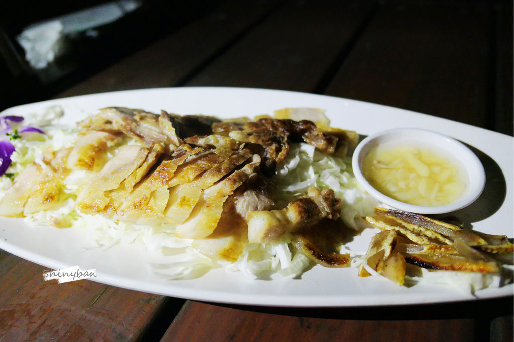 這道山豬肉的味道鹹香的剛剛好,肉質十分有咬勁,卻又不會到太乾柴,但可惜的是室外風太大,所以餐點很快就變涼。
