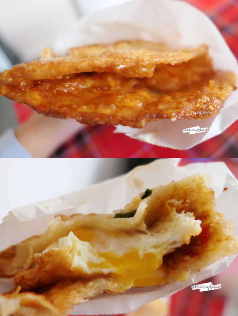 瞧瞧這金黃酥脆的餅皮,還沒入口就令人食指大動,一咬下,外皮雖然酥脆,但餅皮內竟然是富有麵粉Q彈口感!重點是並不會過於油膩,配上店家自製辣椒醬,真得是讓人無法停口。