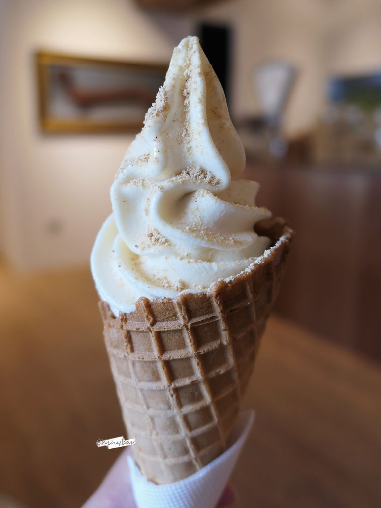 霜淇淋吃起來和豆乳一樣豆香濃郁,撒上些微的黃豆粉更加增添香氣,微微的甜味老少咸宜,重點是完全不會有罪惡感阿!炎夏來上一支真的消暑又無負擔,我覺得甚至比我之前去日本吃到的更好吃!