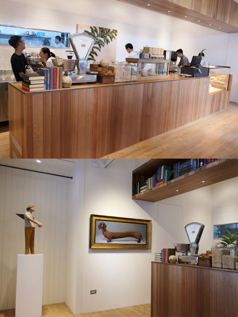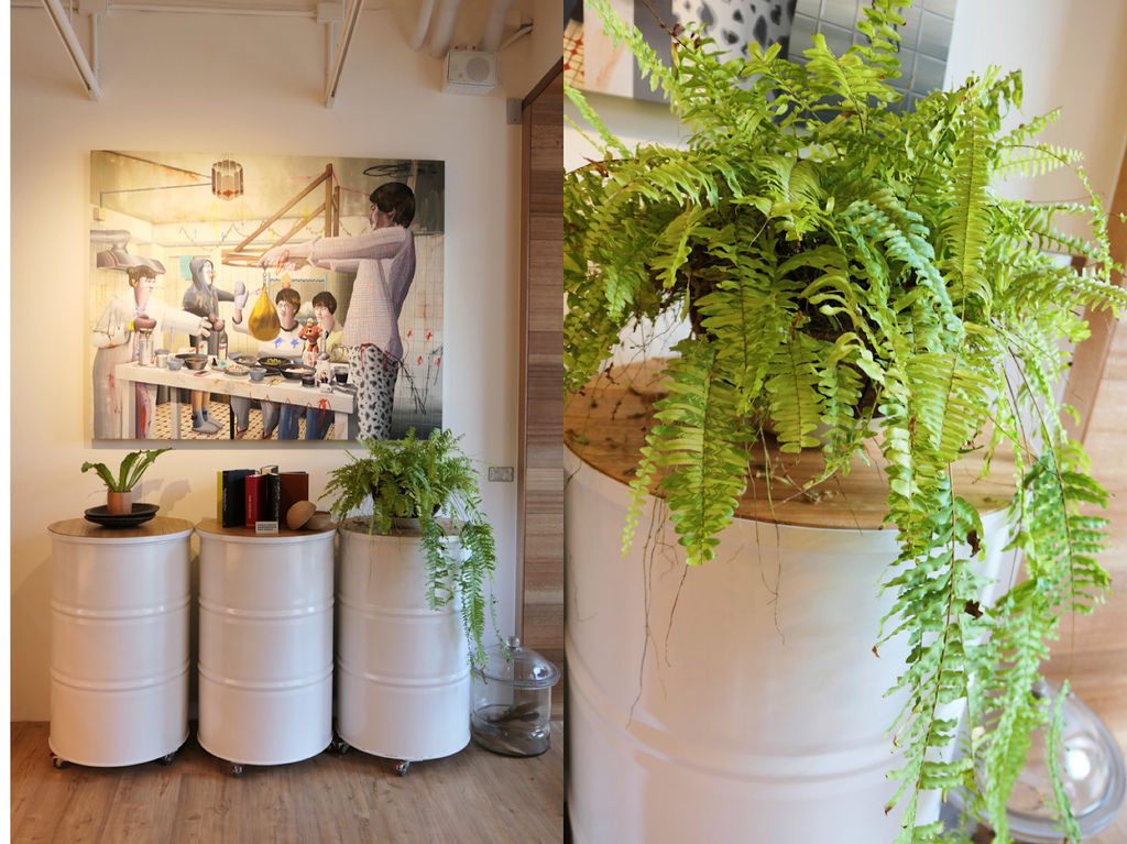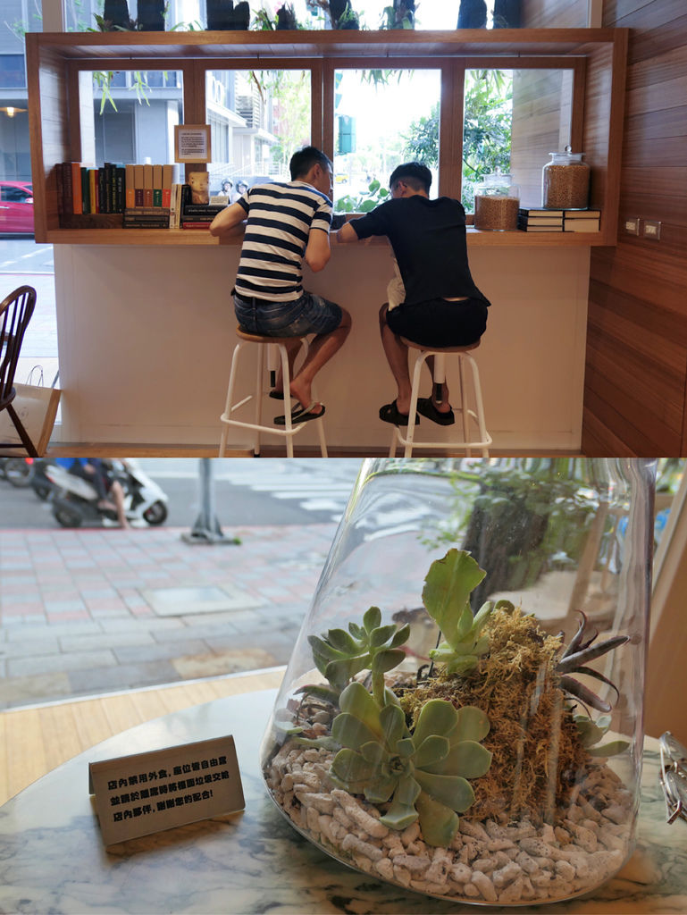 店內是採用大片落地窗,所以採光非常好,陽光灑落的感覺十分溫暖,而店家的布置感覺也很有巧思,逗趣的畫作配上植栽及書籍等等,意外的融洽。
