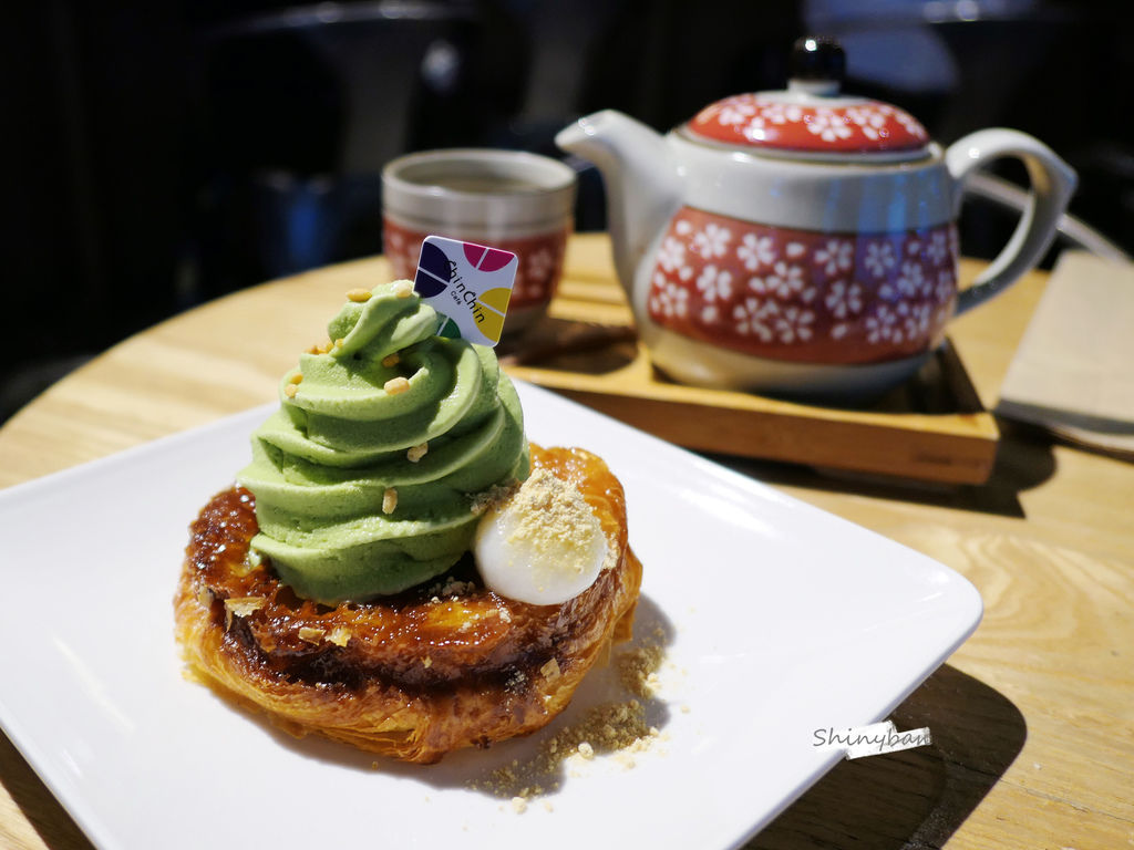 上面的冰淇淋有三種口味可做選擇,抹茶控的我當然是選擇日式玄米抹茶,冰淇淋甜度不高,但論濃郁度,也不是太過香醇。下面的丹麥麵包烤的香酥,外層裹上一層糖漿,不曉得是不是裹得太厚,咬起來有些費力,甜度也稍高了些,整體來說是有點小小失望的。