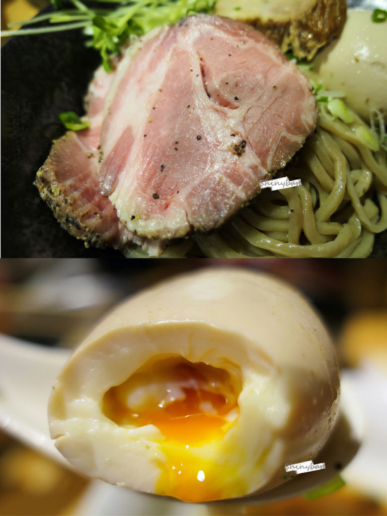 特製部分,是有一顆糖心蛋配上三塊叉燒,除了上述的厚片叉燒外,更特別的是另一種低溫烹調的叉燒,帶有玫瑰色熟度的肉片,吃起來軟嫩不已,香氣十足。糖心蛋也是處理的恰到好處,顏色雖然看似不深,但軟嫩的蛋白及半熟的蛋黃都十分入味,非常好吃。