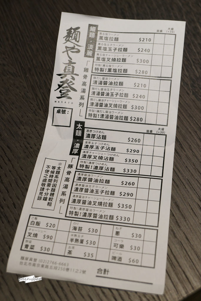「麵屋真登」位於南京三民捷運站約十分鐘腳程,位置剛好是在巷弄的轉角處,高湯是採每日限量,售完為止,平日中午還有提供白飯一碗的服務,但我個人覺得一碗麵就超飽了。
