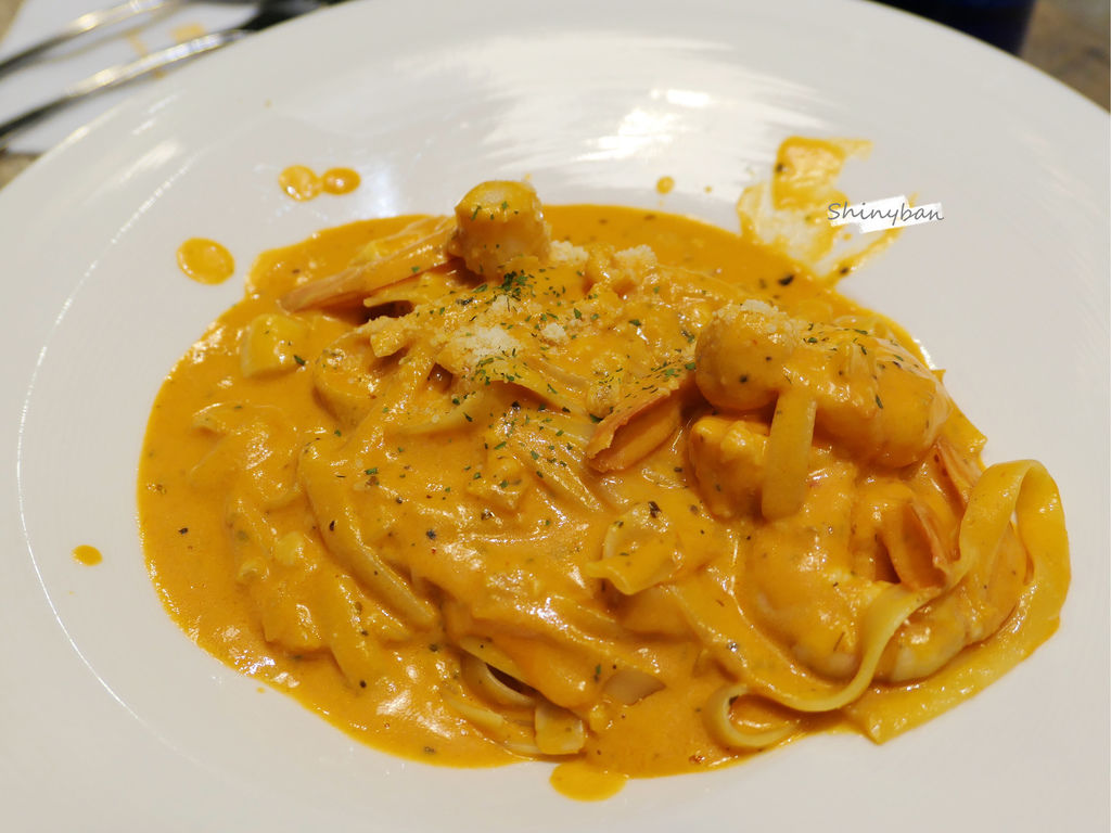 ▲鮮蝦干貝茄汁奶油寬麵 $190
