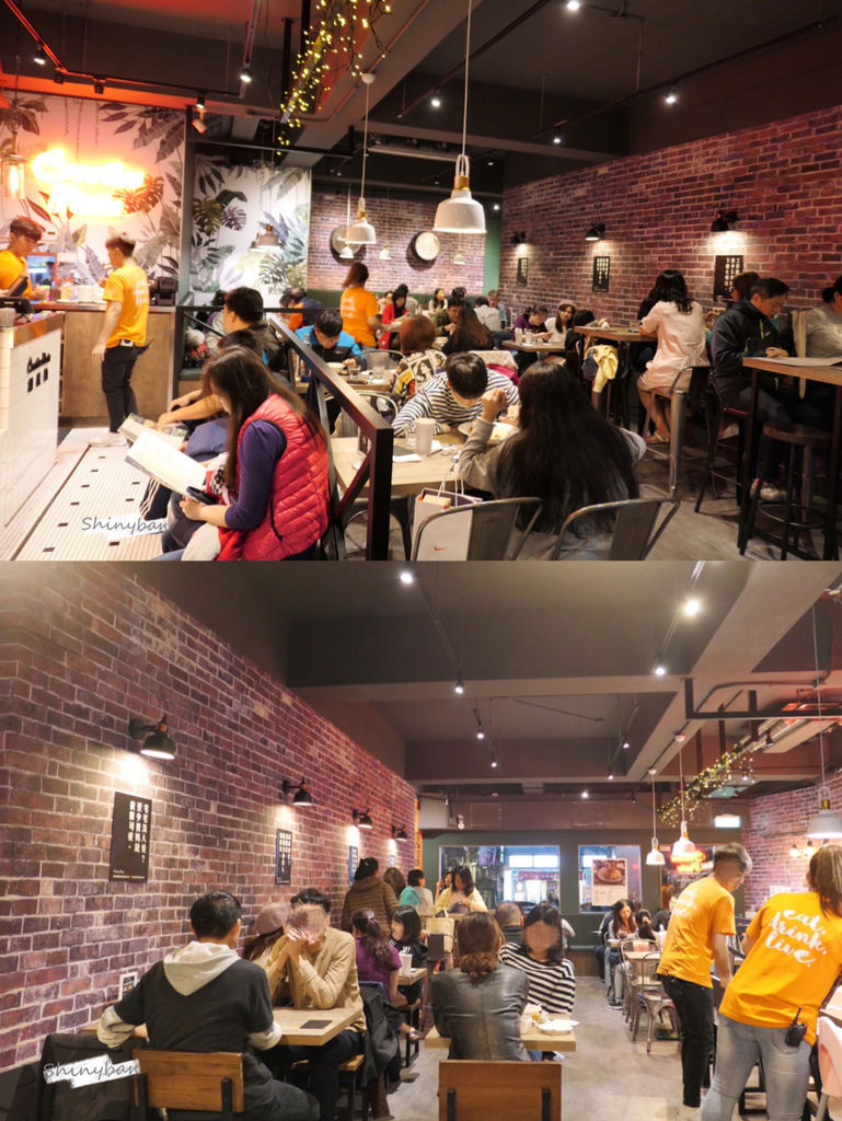 店門口漆成Tiffany綠,與店內的磚瓦及木桌椅毫不違和,光是顯眼的門面,就吸引了許多經過民眾駐足。