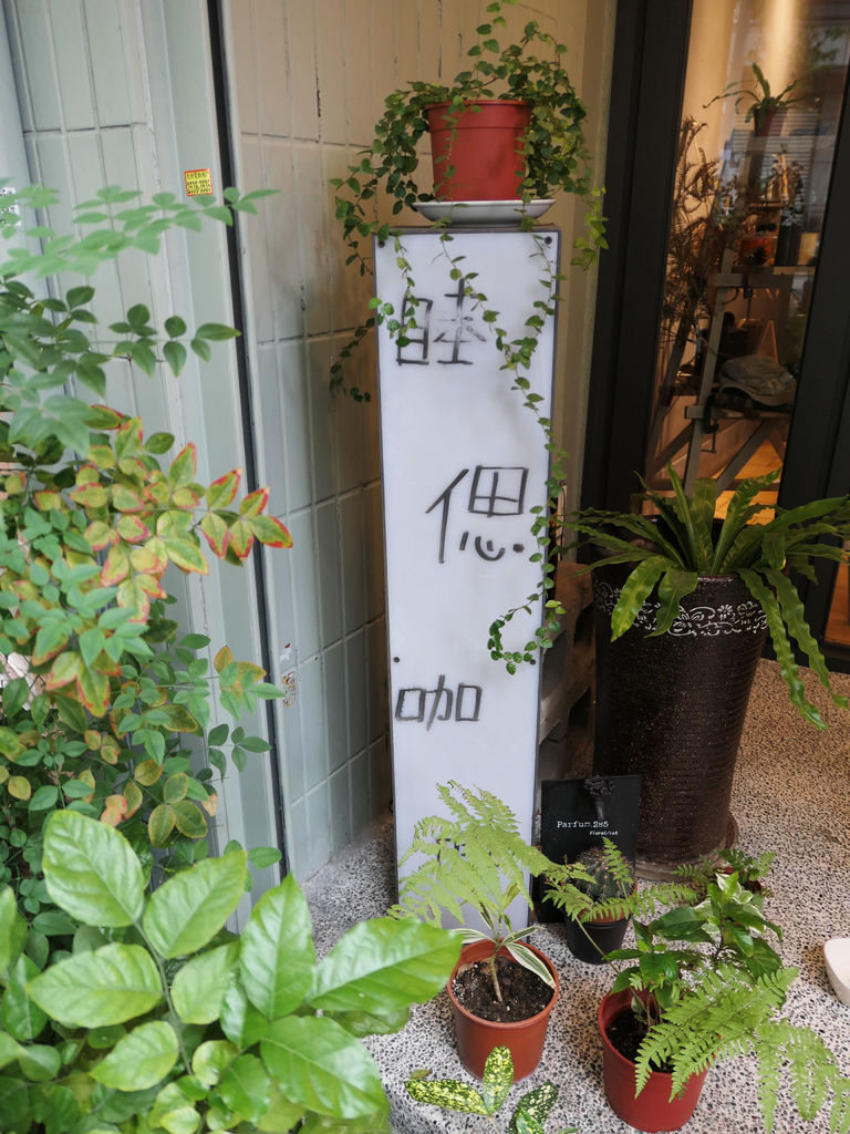 「睦偲咖啡」位於中山站與雙連站間,約十分鐘的腳程,從門外看,是一間不太起眼的小店,小小的招牌,似乎還被盆栽給遮蔽住,就是因為沒有太招搖的裝飾,才顯得特別神秘特別吸引人。