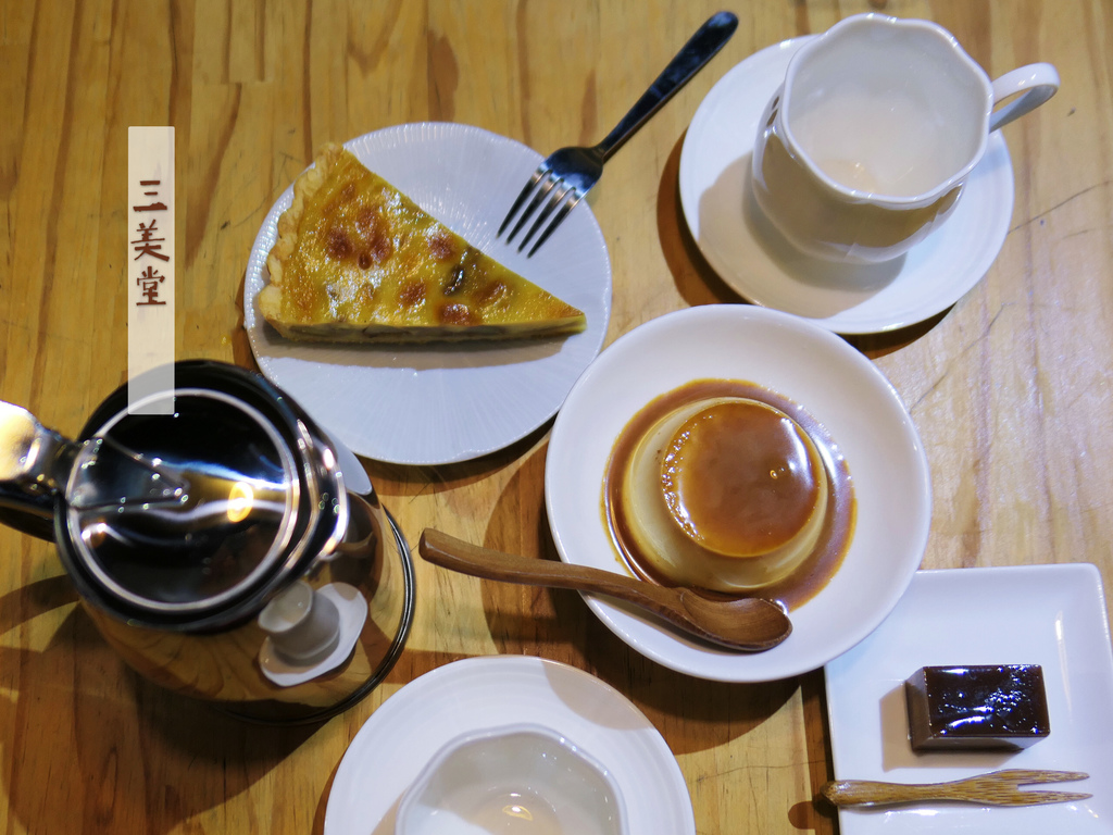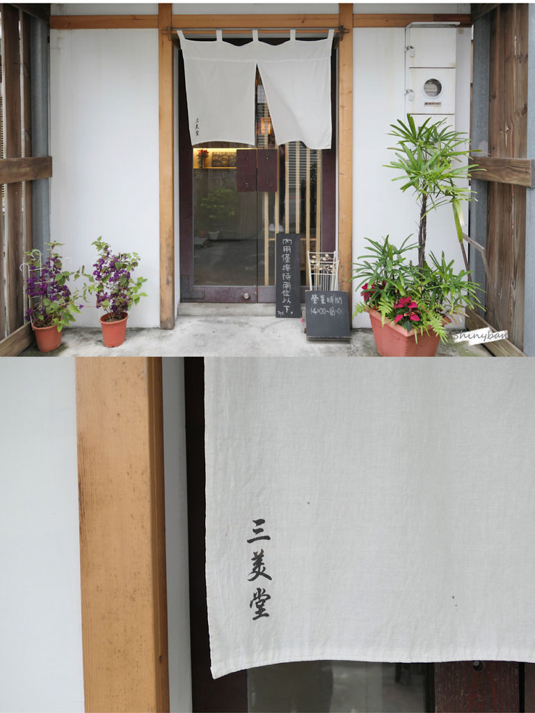 入口有一個小小的庭院,門口米白的布簾上寫著小小的「三美堂」,著實讓人有種在日本鄉間小店般的錯覺,特別要注意的是用餐人數僅限兩人以下唷!如果超過就要分桌或是外帶了。