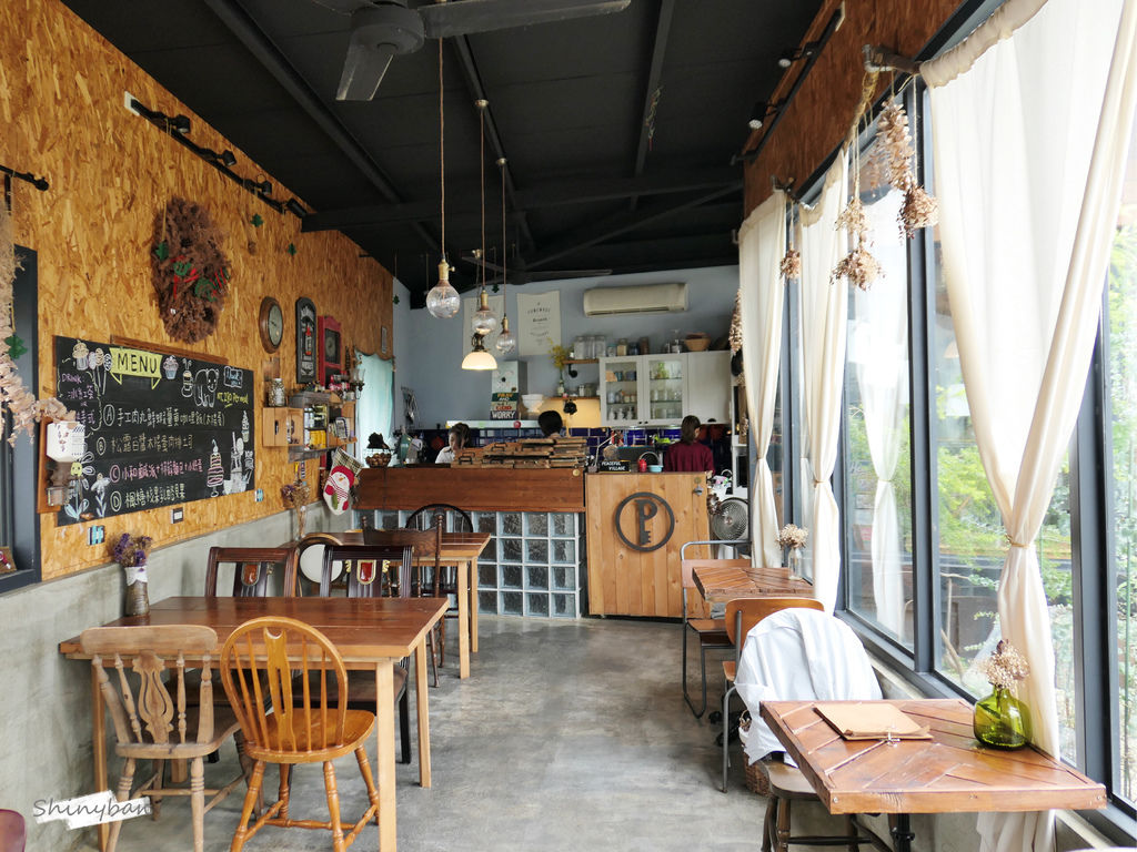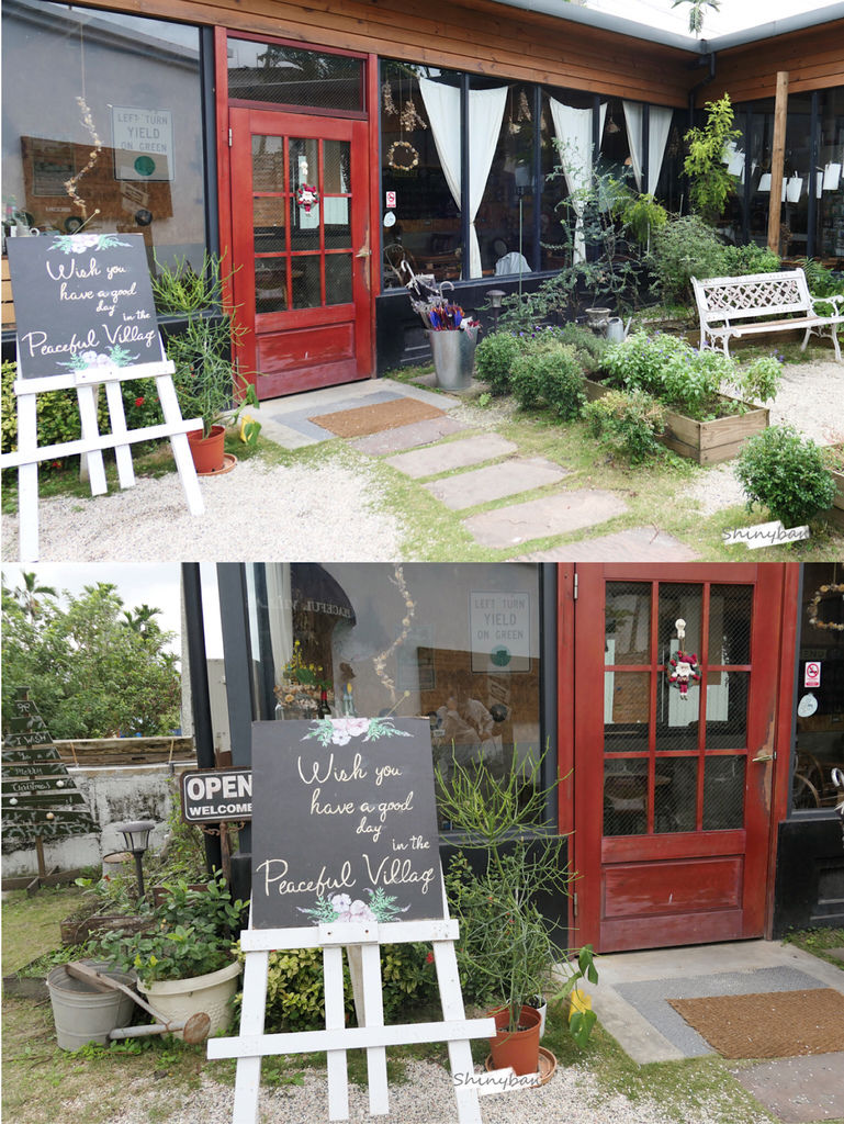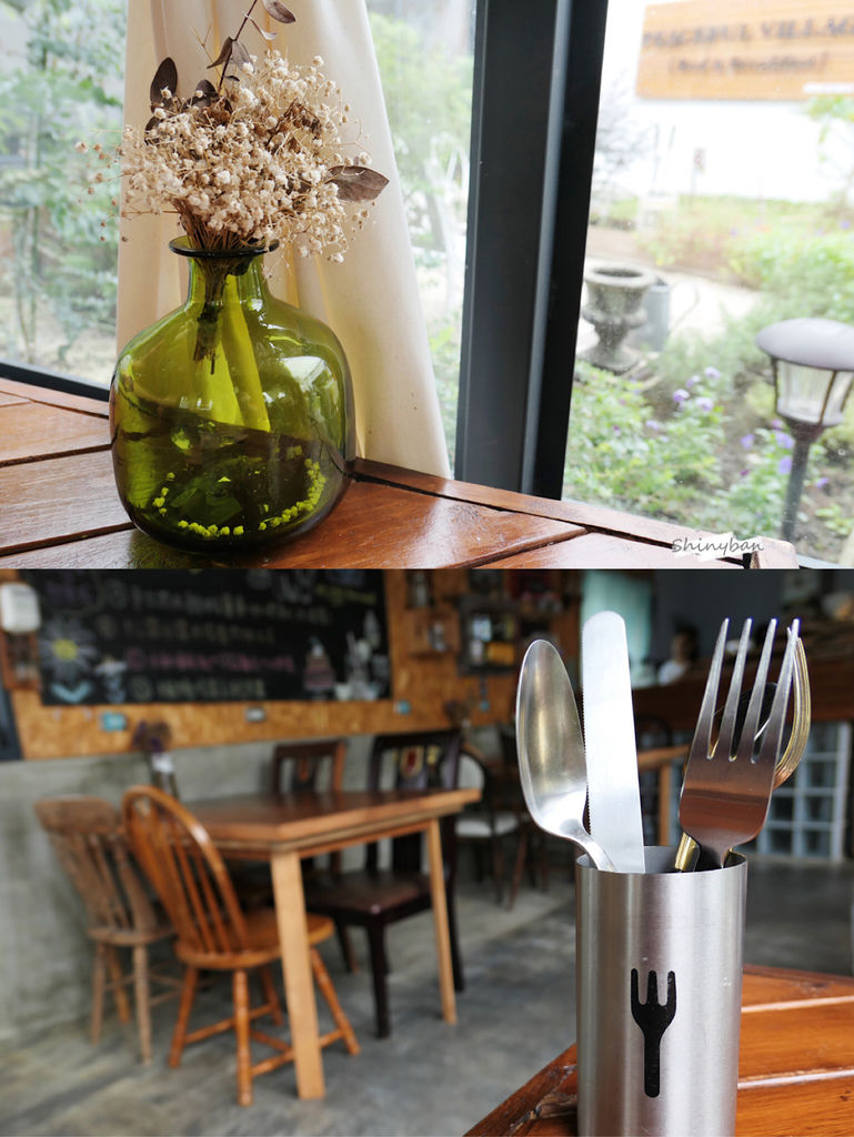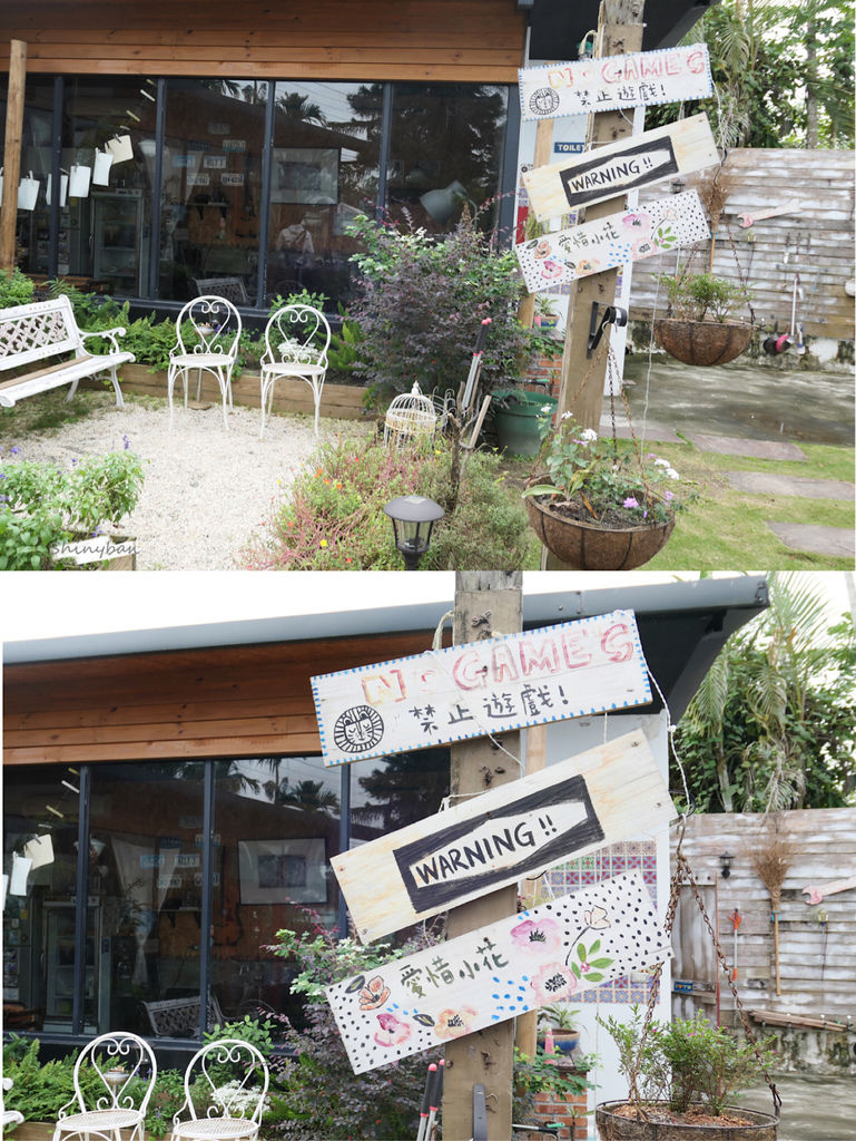 中間有一片小花園,花花草草的綠意以及木製房屋,有鄉村風的氛圍,是隨興又令人放鬆的美感。
