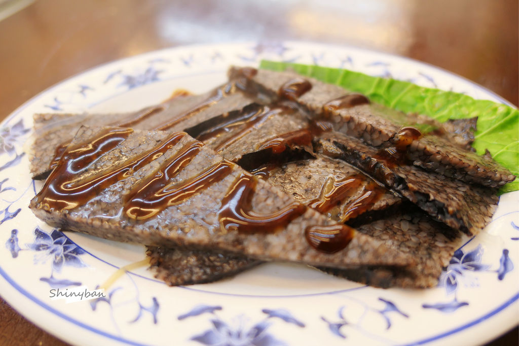 第一次吃到切成這樣薄薄一片的米血,口感比平常吃起來更微軟嫩,上面醬油膏有點微辣,但不知道為什麼覺得有點酸。