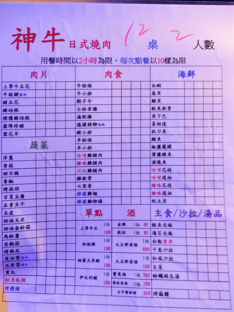 有鑑於男友是無肉不歡加上大胃王,吃到飽就是最好的選擇囉!但跨年餐廳都超難訂,問了幾家才問到這間「神牛炭火燒肉」。