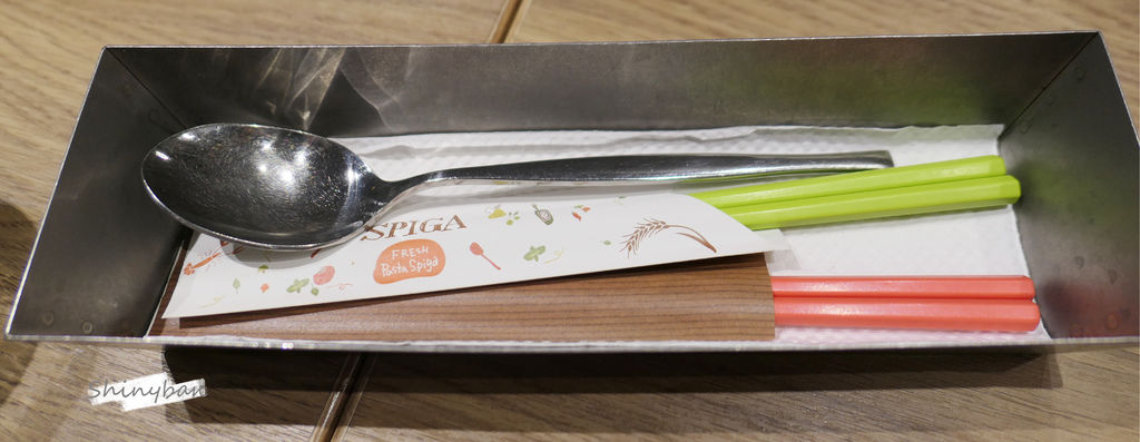 由於店內提供的義大利麵不僅有市面上常見的乾麵,還有少見的湯麵,所以除了叉子外,還有附上筷子跟湯匙,使用筷子吃義大利麵真的是很難得的體驗。
