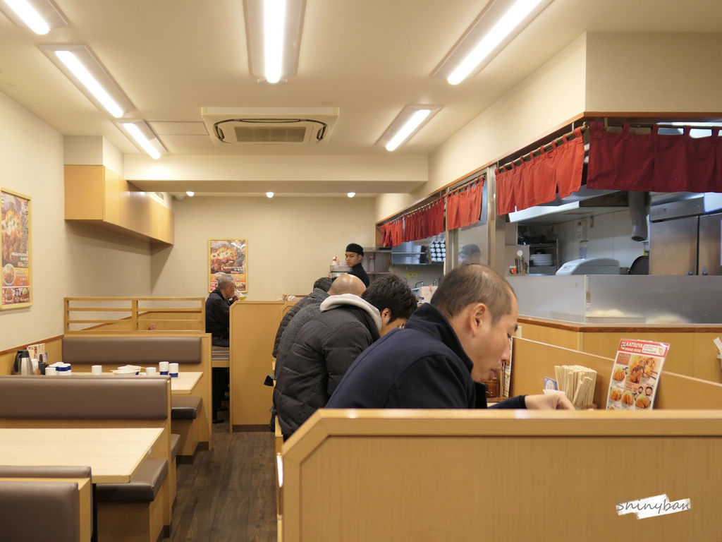 店內的空間並不大,主要是一整排的吧檯,以及一整排的四人桌型座位,由於剛好正值晚餐時間,所以用餐人潮一直絡繹不絕,甚至還需要稍微等候一下才有位置,可見「吉豚屋かつや」在日本的受歡迎程度,真的是不容小覷的。