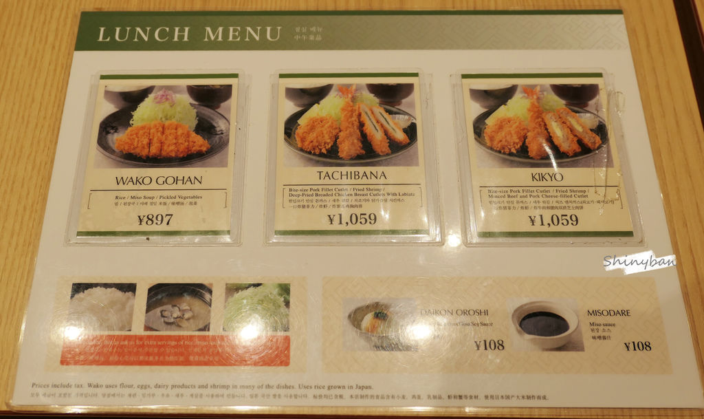 它位於百貨公司內的五樓,由於當天已過了用餐時段,所以很幸運的不用排隊,外觀一如傳統連鎖豬排店的樸實,沒有什麼多餘的門面佈置。