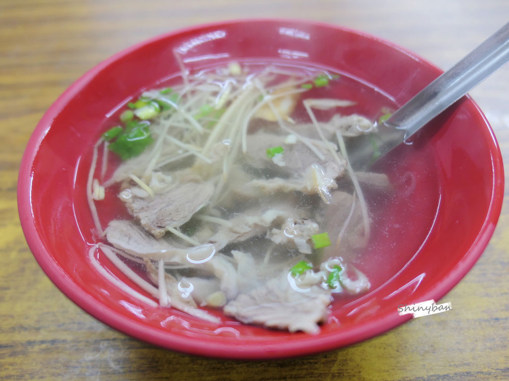 肝連湯加很多薑絲,喝起來有點辛辣,而湯底部分不曉得是不是加太多味素,味道很甜,喝完舌頭會澀澀的,不是太喜歡。