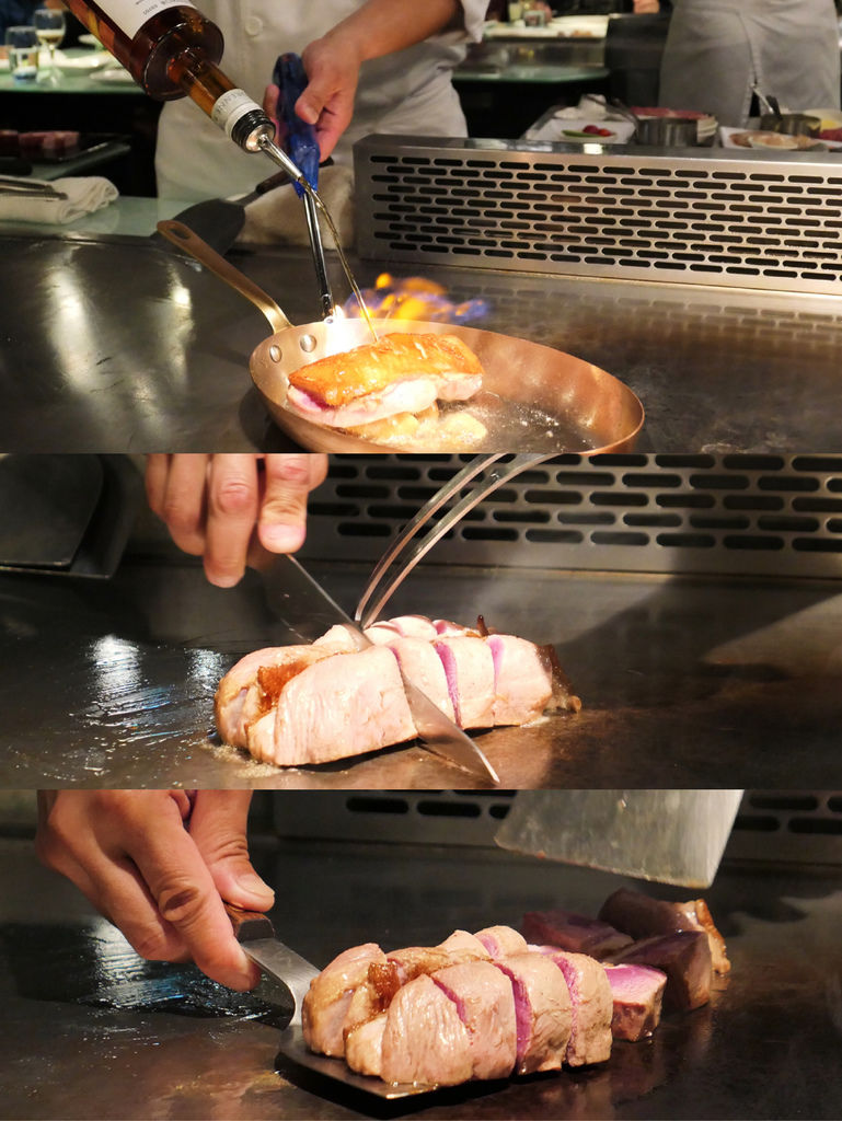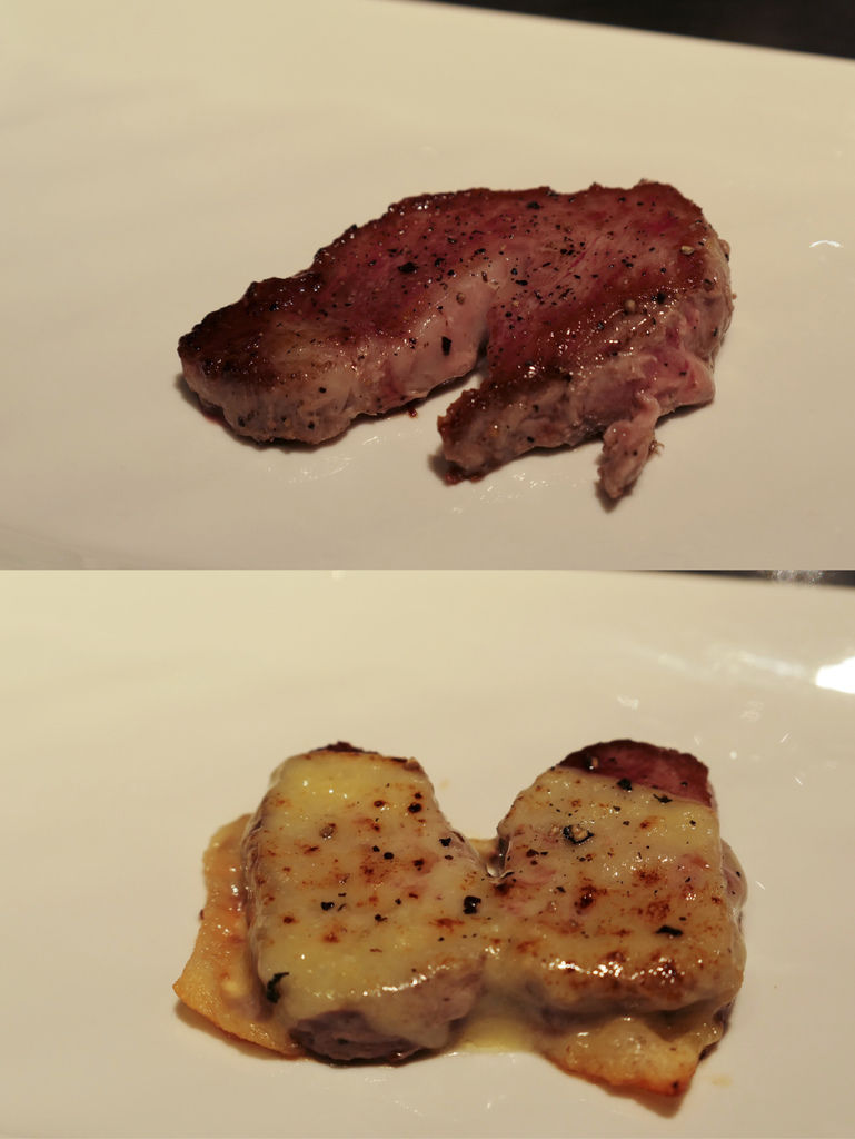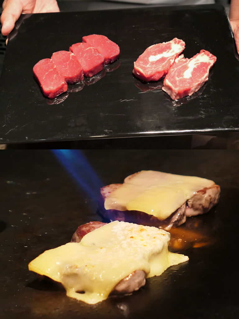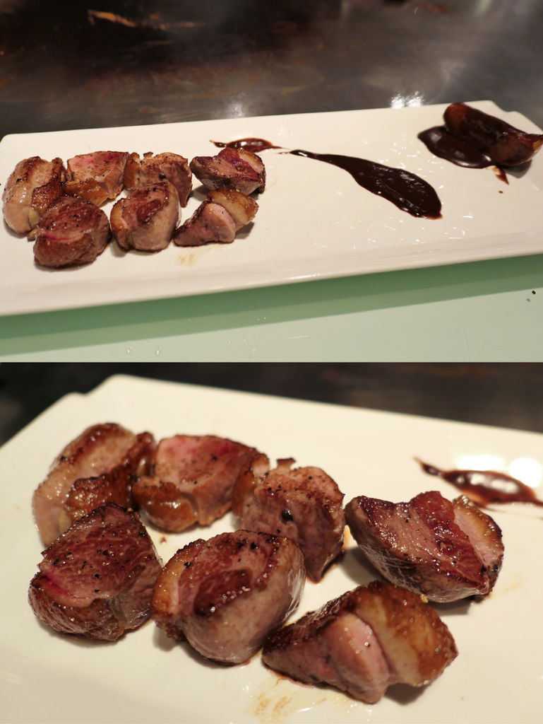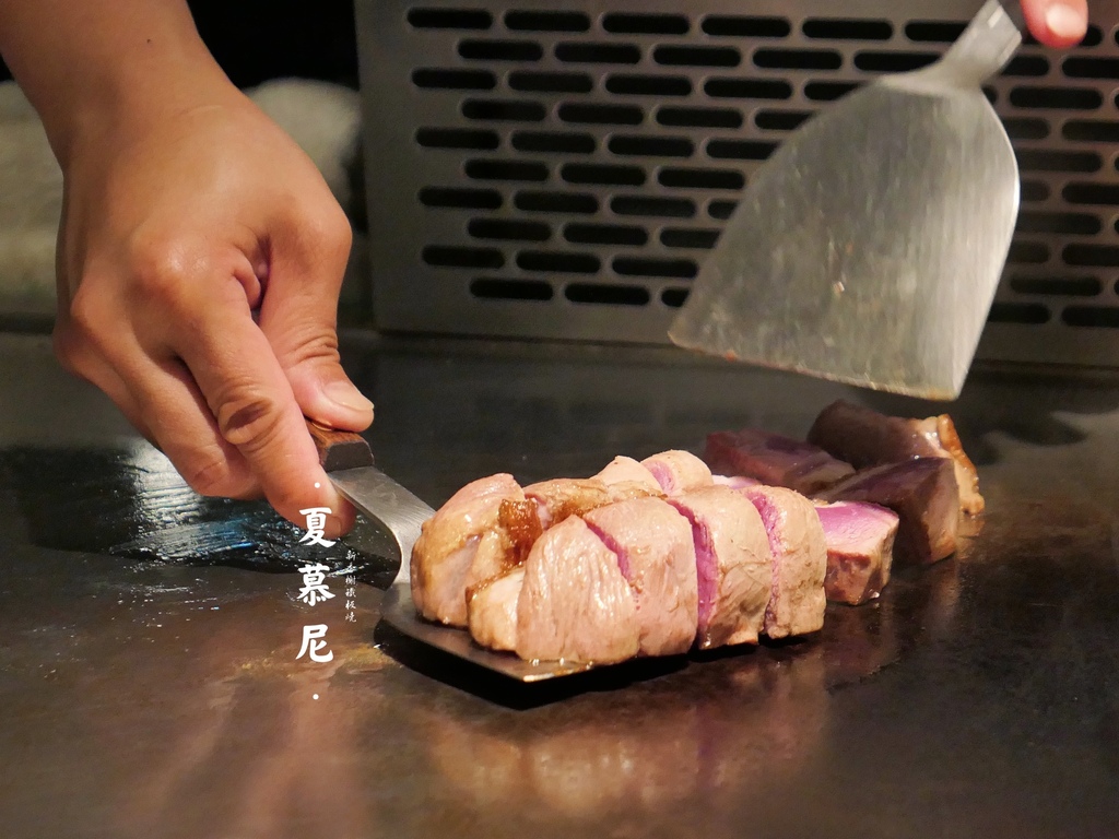 濃郁的起司搭配菲力的扎實口感跟油脂,從來沒有吃過的搭配組合,肉質簡直像極了牛肉;老饕肉則是直接用鐵板煎烤,撒上一點胡椒做簡單調味,肉質跟油脂極其滑順,我非常喜歡。