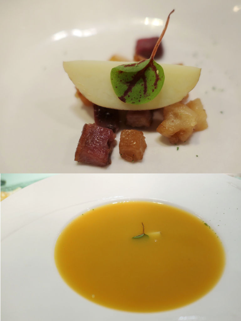 伊比利豬號稱豬界的勞斯萊斯,在這份套餐內可以吃到兩種部位,其中一個是老饕肉,另一種是豬菲力,兩種吃起來的口感完完全全不同!豬菲力是以高達起司做高溫的炙燒,入口時要非常小心!因為很燙口!