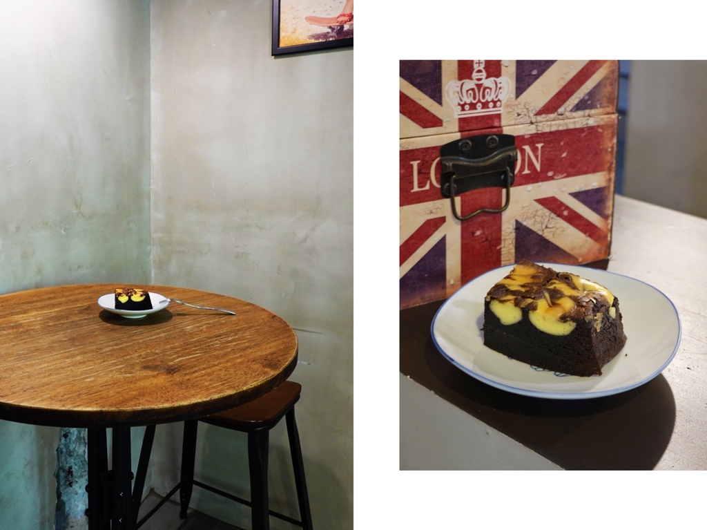 「老屋手烘咖啡吧Old House cafe」的布朗尼是偏濕潤型,而非我較偏愛的扎實口感,甜度中等,上頭的大理石紋路帶些乳酪味,作為解饞的下午茶小點還不賴。