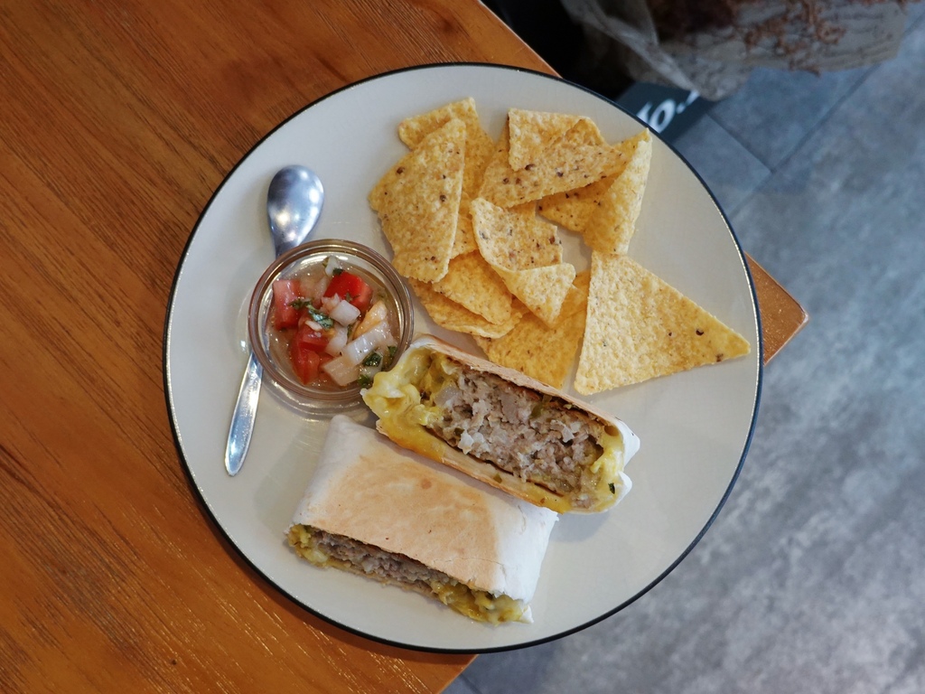 一旁有附上莎莎醬及墨西哥玉米片,自製莎莎醬吃起來非常天然,沒有過重調味,呈現出番茄本身酸度及洋蔥等辛香料的香氣,供一旁玉米片沾取食用。