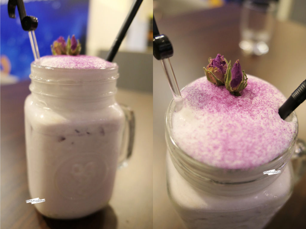 這道飲品微微淡紫色滿美的,但喝起來跟想像中不太一樣,香料味有點重,不太順口。