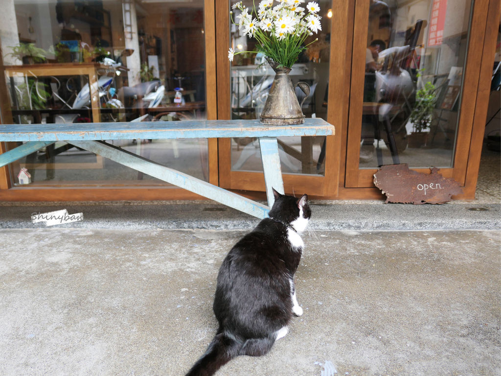 店裡有隻很不怕生的喵咪,拍照的時候一直在腳邊蹭阿蹭,在店內店外自由的進出,真是愜意。