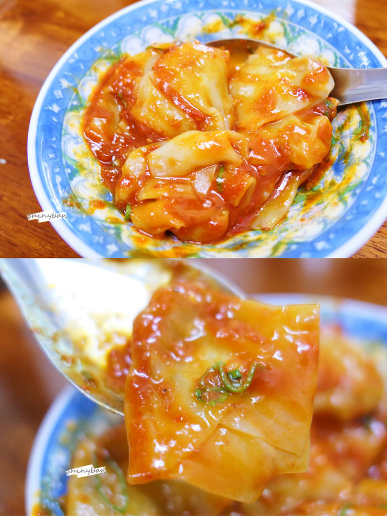 一碗約有十顆抄手,但辣醬幾乎已經覆蓋住,一片紅通通怪可怕的,他們家的抄手很特別,扁扁一個,內餡很少,吃起來麵皮的口感特別出眾。