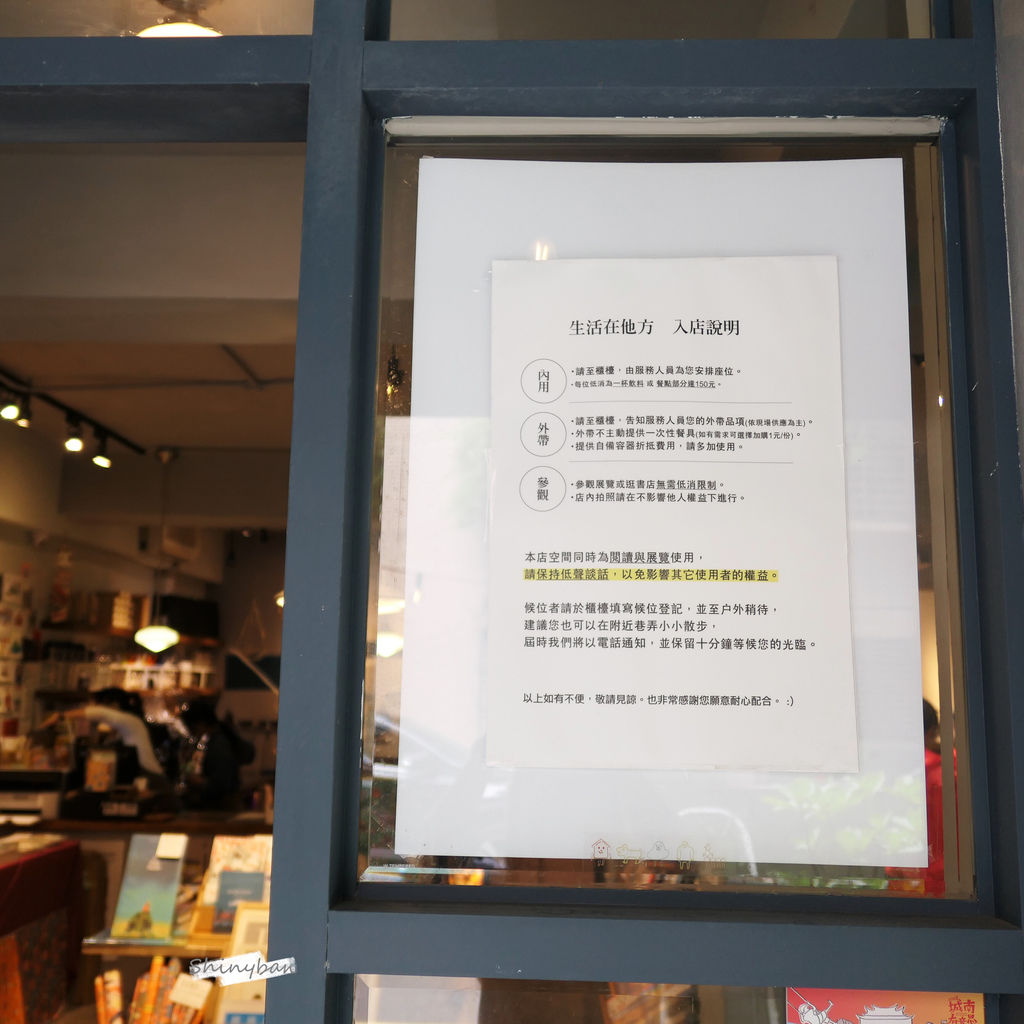 由於「生活在他方」除了是咖啡廳之外,也是藝文空間,為維護所有客人的權益,所以不論是參觀或用餐,都務必保持輕聲細語。