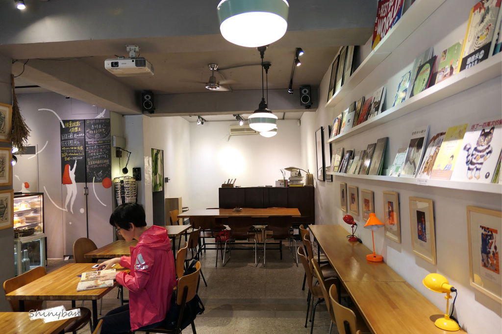 由於造訪的當天是平日,所以帶了筆電辦公,店內約只有六成的客人,氛圍安靜舒適,當使用電腦一段時間眼睛累了,就隨手從牆上拿下一本繪本翻閱,這種感覺很自由、很放鬆,好像達到了店內小黑板上頭寫的:善待自己,好好休息。