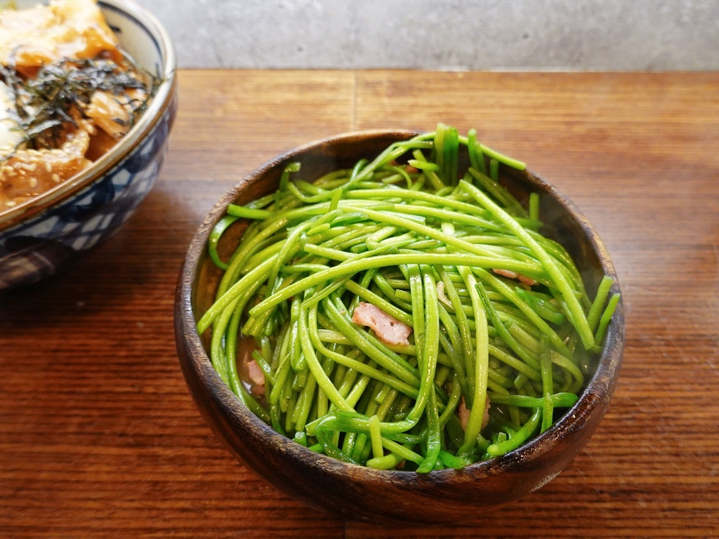 整碗的水蓮份量不少,除了獨到的清脆口感外,還多了培根的煙燻香氣,整體吃起來鹹度適中,我很喜歡。