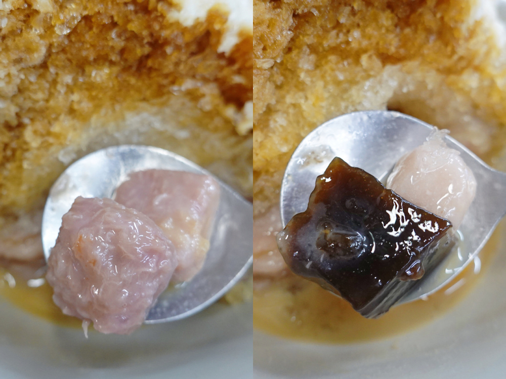 黑糖粿是本店招牌,吃起來QQ的口感很好,不會過甜,印象中沒在其他冰品店看過這項配料;芋頭更不用說,就是我的本命,口感綿密、甜度恰到好處。