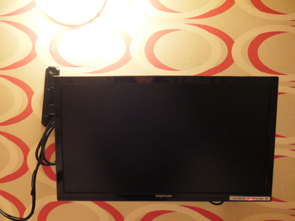 裡面還有附一台電視可以觀看,但由於外出行程太累了,就沒有打開做使用,整體來說還算不錯,但灰色調的牆壁配上昏黃的燈光,會讓人覺得房間有種泛黃髒髒的感受,而且布簾不太透氣,如果完全拉上空調進不來,空氣會很悶,有點扣分。