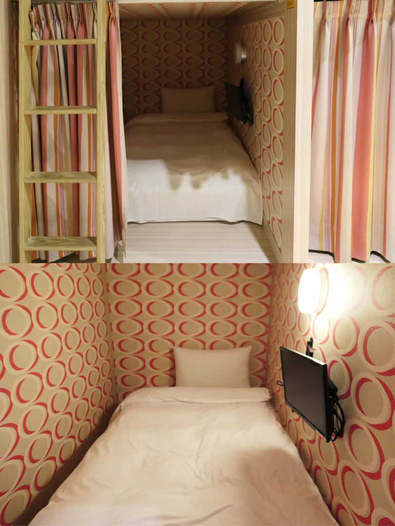 接下來就是重頭戲了!採用一間八張床位上下舖的膠囊房型,雖然高度不高,但爬梯沒有把手還是有點小危險,當天雖然是平日,但仍有五位房客,算是滿意外的,原本還以為只會有我一位入住。