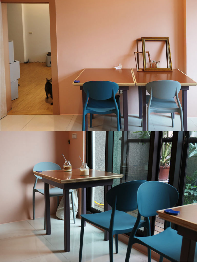 由於落地窗的關係,所以採光很好,當然貓咪也是會在這逛大街,一不小心可能桌子跟座位就被占據了(笑)