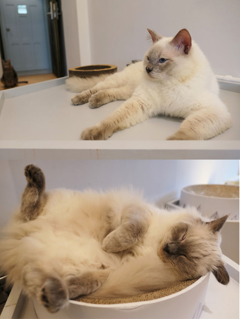 如果沒記錯的話,這裡的兩隻貓咪是老闆自己的,其他都是領養來的浪浪,每隻都被照顧的超好,店員都會一直幫她們梳毛陪牠們玩耍,真為牠們覺得感到幸福跟喜悅。