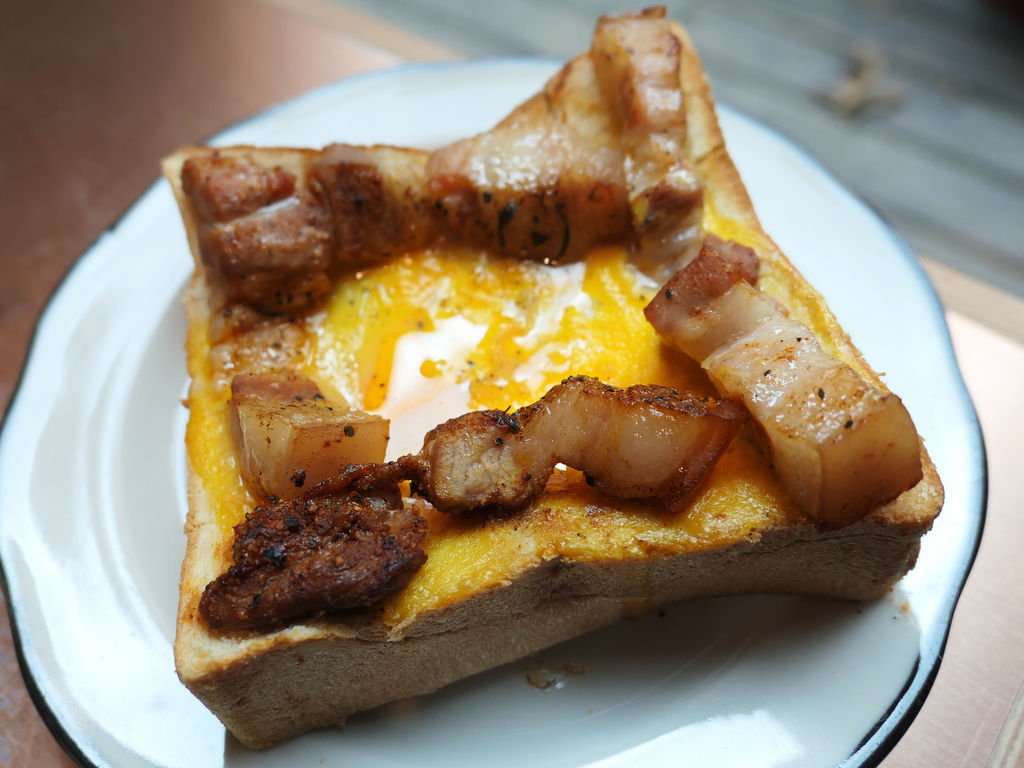 厚片土司上打了顆蛋及放些葛瑪蘭黑豬五花肉,整體口味不錯,但略顯單薄。