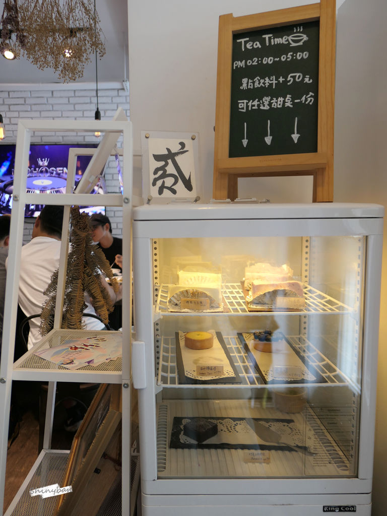 小小的蛋糕櫃裏頭有小巧精緻的甜點,每天都是限量製作,當天就沒有吃到我朝思暮想的藍莓塔還有假日限定的可麗露。另外下午茶時段還有飲料加購$50就可享用甜點的優惠,這麼超值的優惠我怎麼能錯過呢!