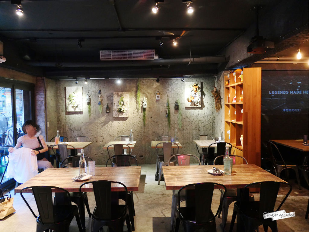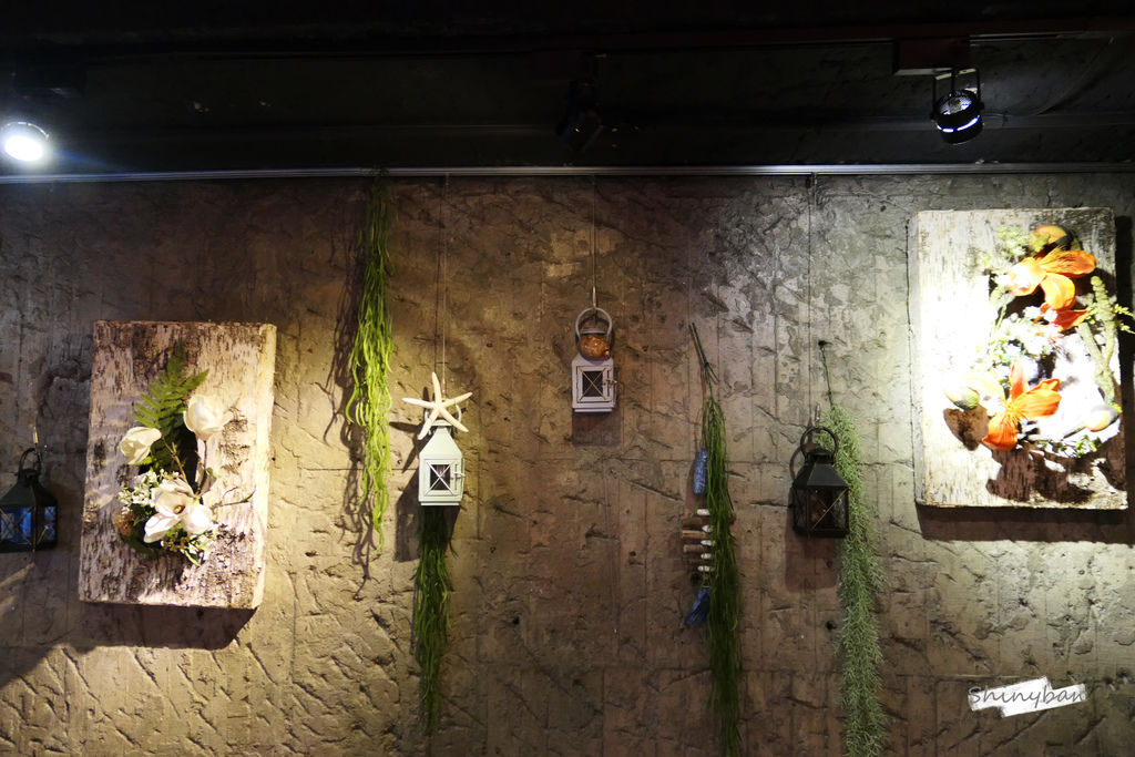 店裡的風格我也說不上來,充滿著各種元素,木桌、鐵椅、水泥牆、海洋擺飾,配上昏黃又偶爾霓虹的燈光,有點迷幻的感覺。