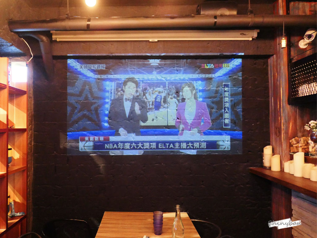 店裡一角有稍微區隔出來的開放式包廂,店家提供了大投影幕可以觀看運動賽事。