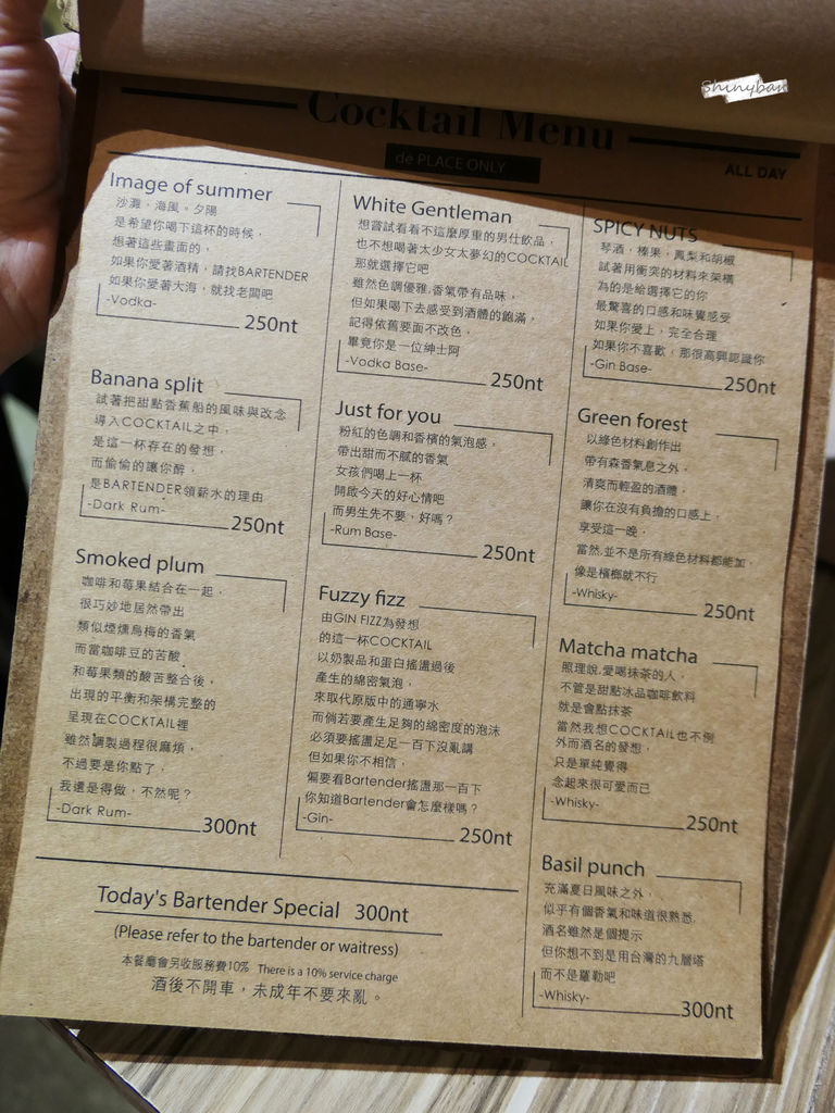 「déPLACE德普雷斯」出乎意料的不合我意,除了義大利麵比較和我胃口之外,調酒跟炸物表現都不如預期。