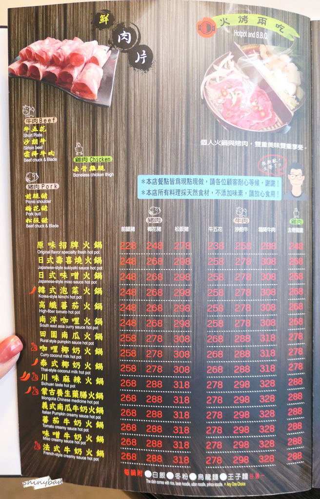 另外一鍋我選擇火烤兩吃,能滿足我想吃火鍋又想吃燒烤的慾望,之前在「加分」吃過牛奶鍋,就對這濃郁的湯頭念念不忘,在「哈帕叔叔」看到這湯底,還有我最愛的松阪豬,就覺得非這組合莫屬了啊!