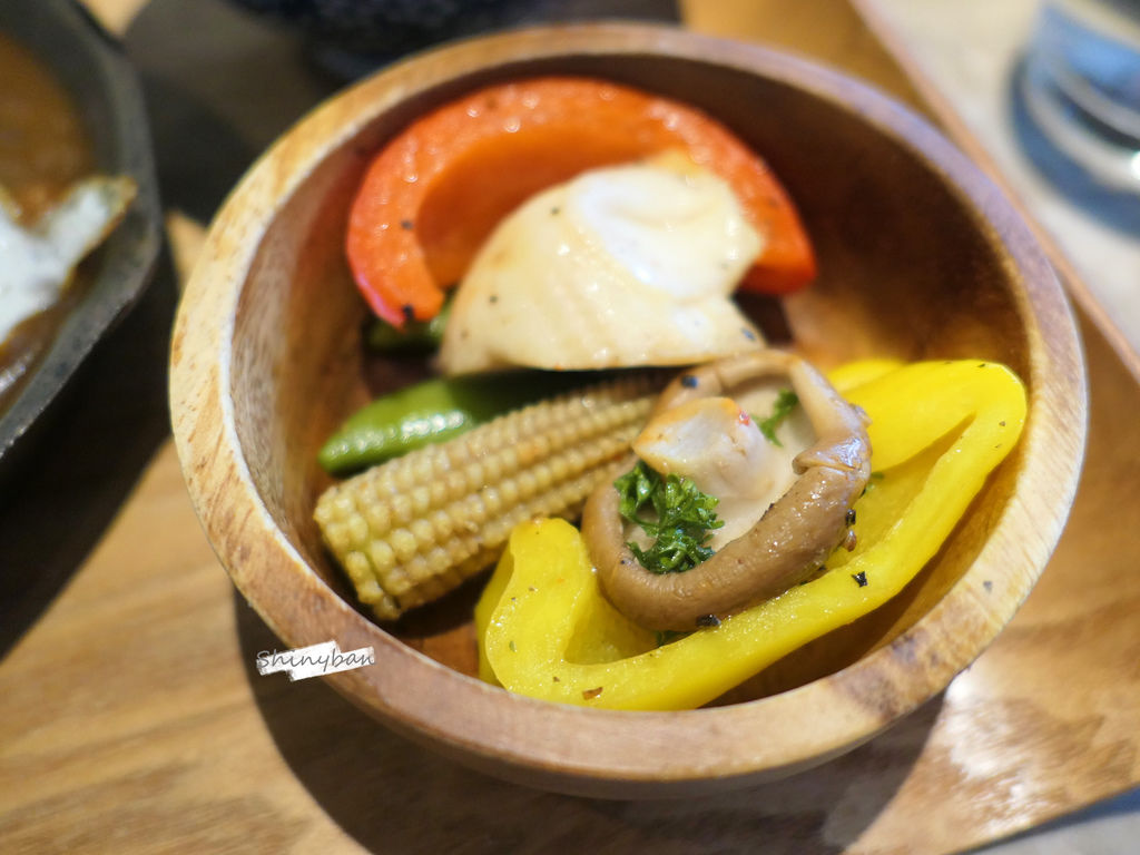 咖哩的配菜是一些清炒的蔬菜,口味也是十分清淡也兼具營養,分量跟口味上,我覺得滿適合女生食用,以男生來說可能飽足感稍嫌不夠。