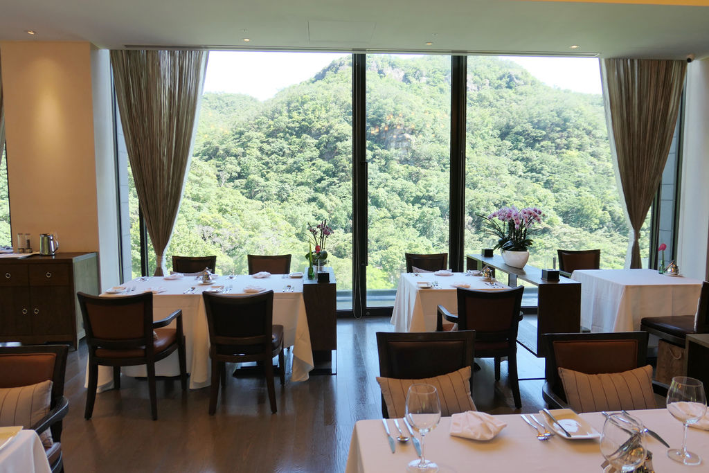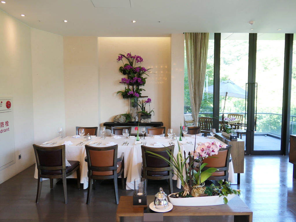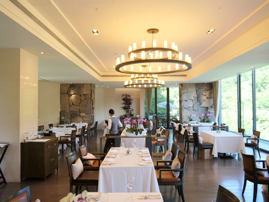 餐廳的賣點之一就是那一整面可遠眺丹鳳山的落地窗,綠油油的山林映入眼簾,頓時有種超脫世俗的感覺,仿佛可以呼吸到森林的芬多精,身心靈都被淨化了。