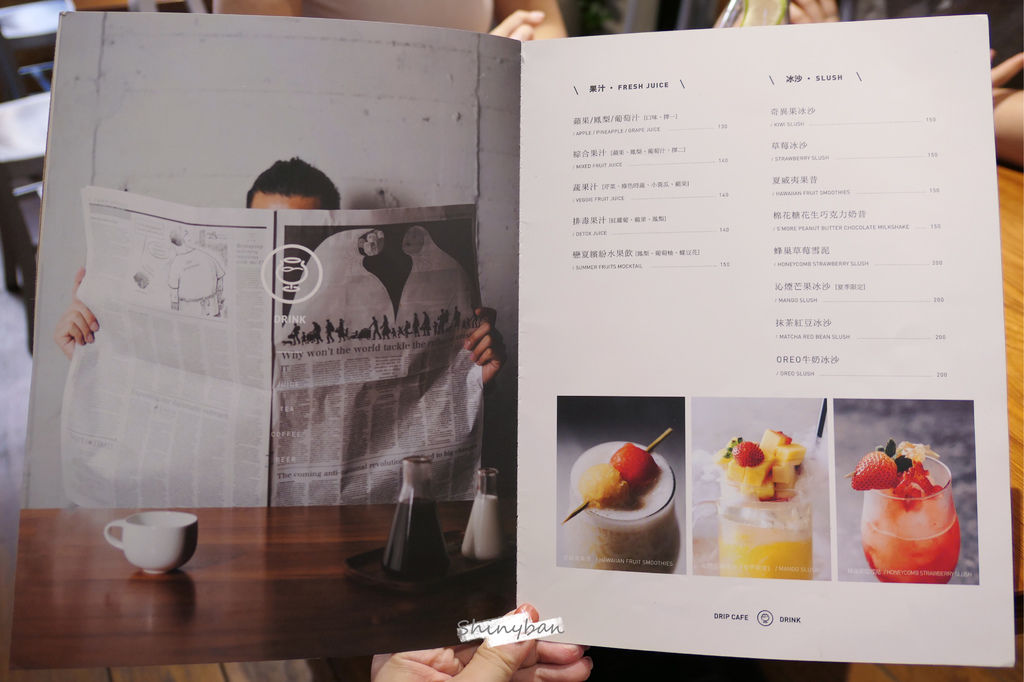 「Drip Cafe 好滴」的空間十分寬敞,桌數也不少,座位空間距離也得宜,只是桌面實在太小了啦!三人座點三份主食三杯飲料就會被塞的超滿,私心覺得既然空間不小,就可以稍微擺放寬敞一點的桌子,用餐起來也會比較舒適些。