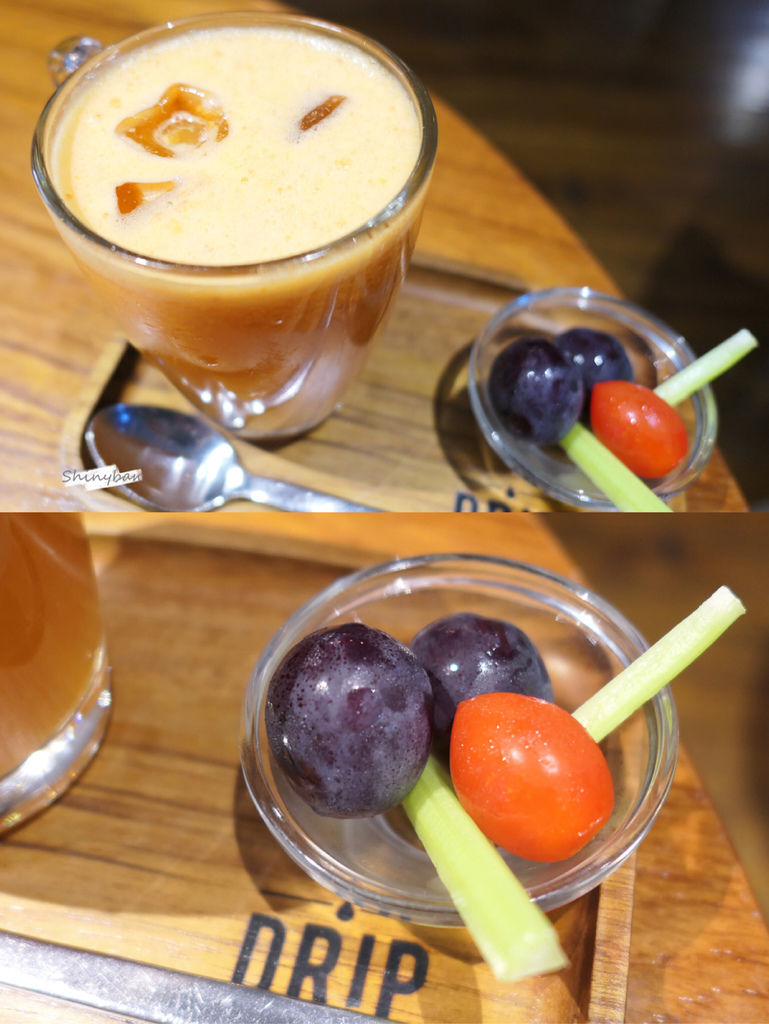 由紅蘿蔔、鳳梨跟蘋果打成的果汁,喝起來真的跟自己在家打的果汁沒兩樣,沒什麼特別之處,一杯還要價不斐,不建議點。